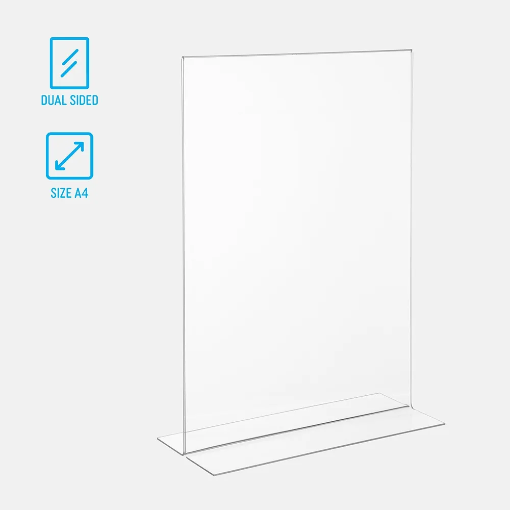 These sign holders are part of a great range of acrylic POS signs for counter tops or shelves. This acrylic stand holds a double sided A4 piece of artwork that is displayed in portrait format. They are some of the cheapest and easiest of sign holders to use and they are ready to use straight from the box.