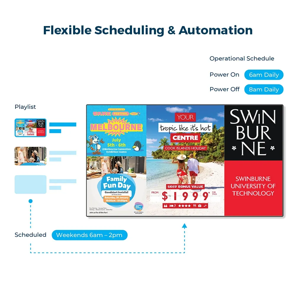 - Commercial-grade screen supports up to 18 hours daily use for all-day promotions