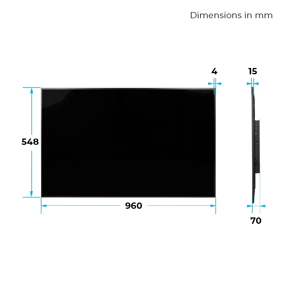 | Overall Size | 960 x 548 x 70 mm (Screen) |