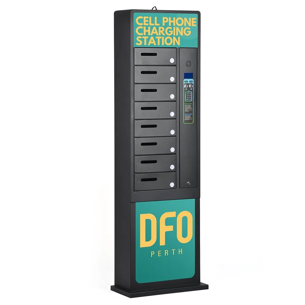 These secure charger kiosk stations, phone charging lockers allow visitors to securely recharge their devices whilst visiting your location, whether at a library, shopping centre, airport, gym, aquatic centre, golf course, or even at the arcade! There are (8) total units with the stand, each 320 x 210 x 110mm to allow not just phones or tablets, but also other smaller electronic devices and personal items to be stored securely. You create a 6-digit PIN number that is confirmed on the LED screen to both lock and retrieve your device. Lockers light up green if free and red if currently occupied, making it easy to find which one to utilise!