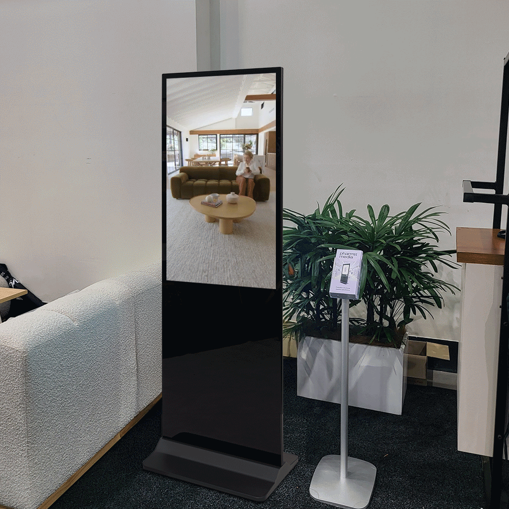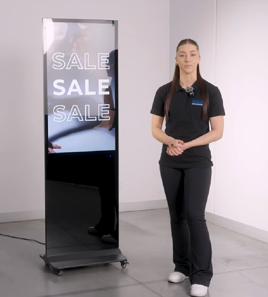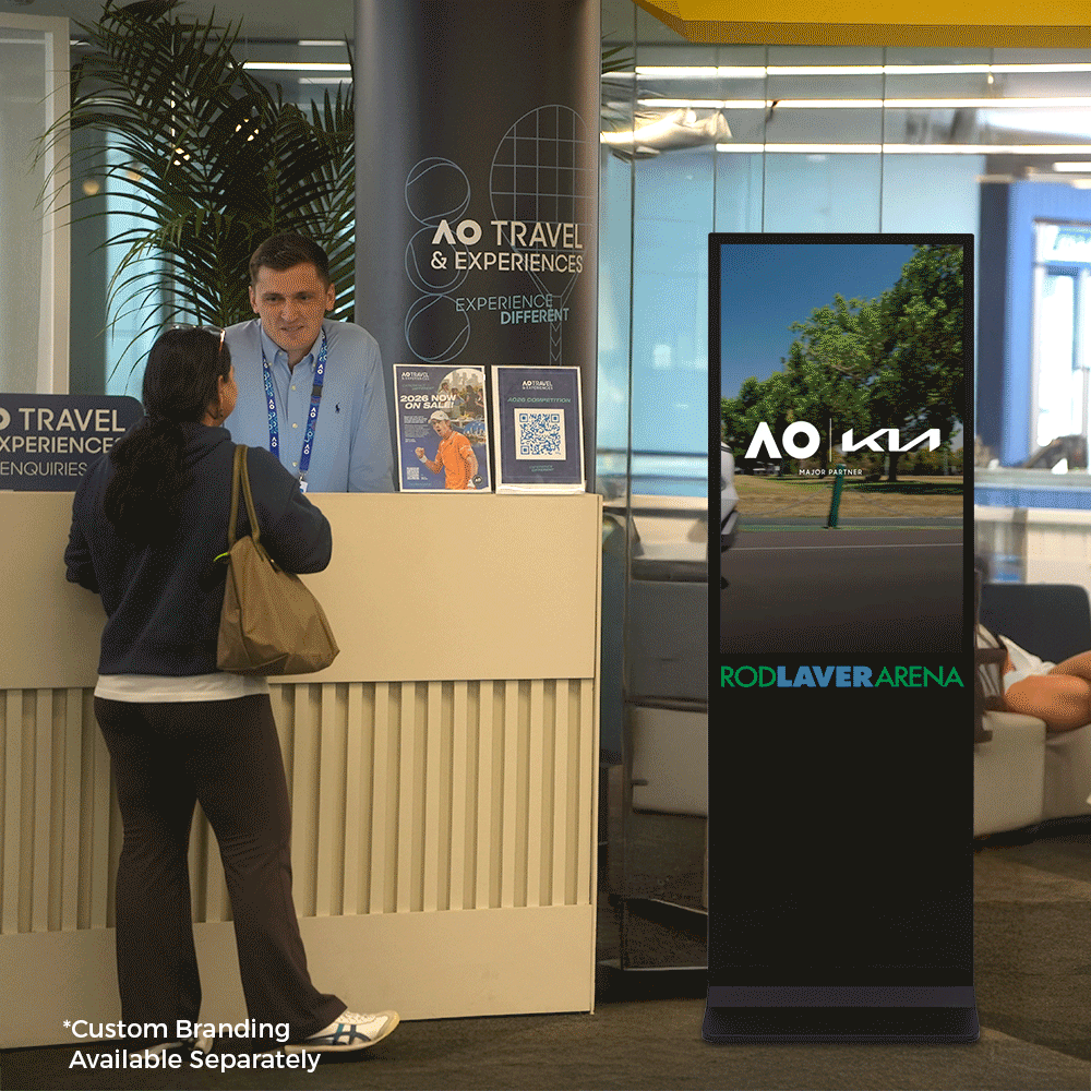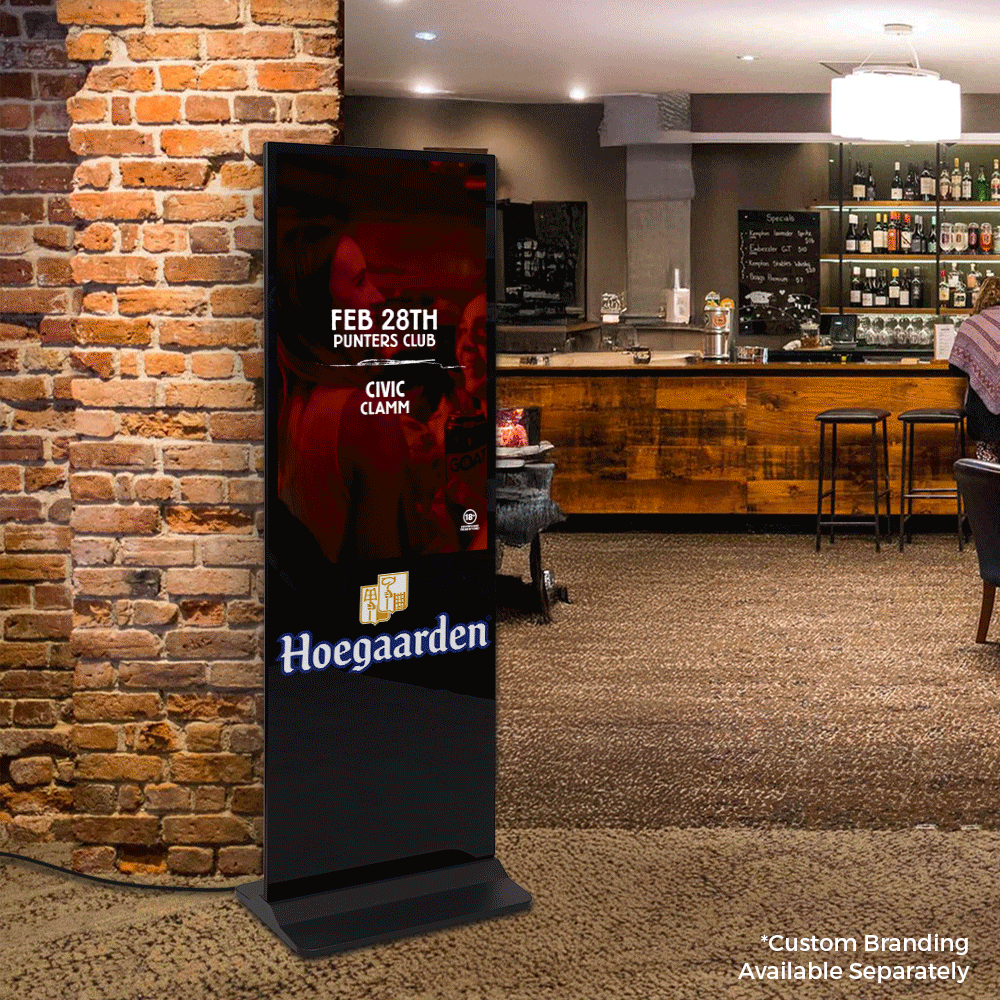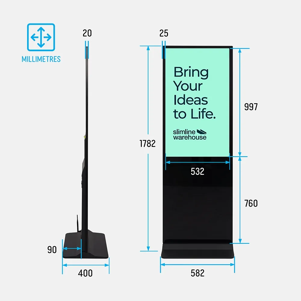 This floor standing signage display features a sleek black finish that blends seamlessly into modern environments. The steel base offers outstanding stability and holds most of the 39.6kg weight. A 3m power cord allows flexibility in placement and easily reaches outlets. Order online today for quick shipping Australia-wide from Slimline Warehouse to start promoting your brand with a professional, eye-catching digital solution built for retail and commercial use.