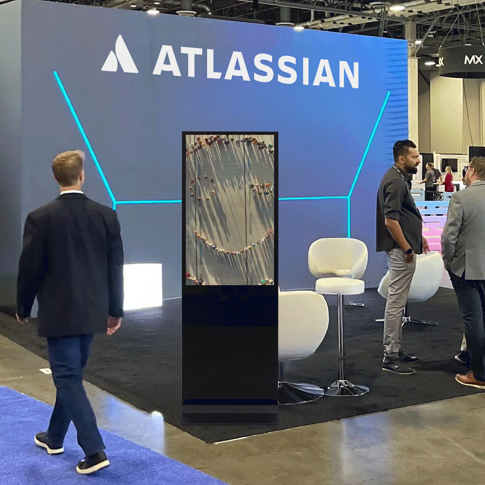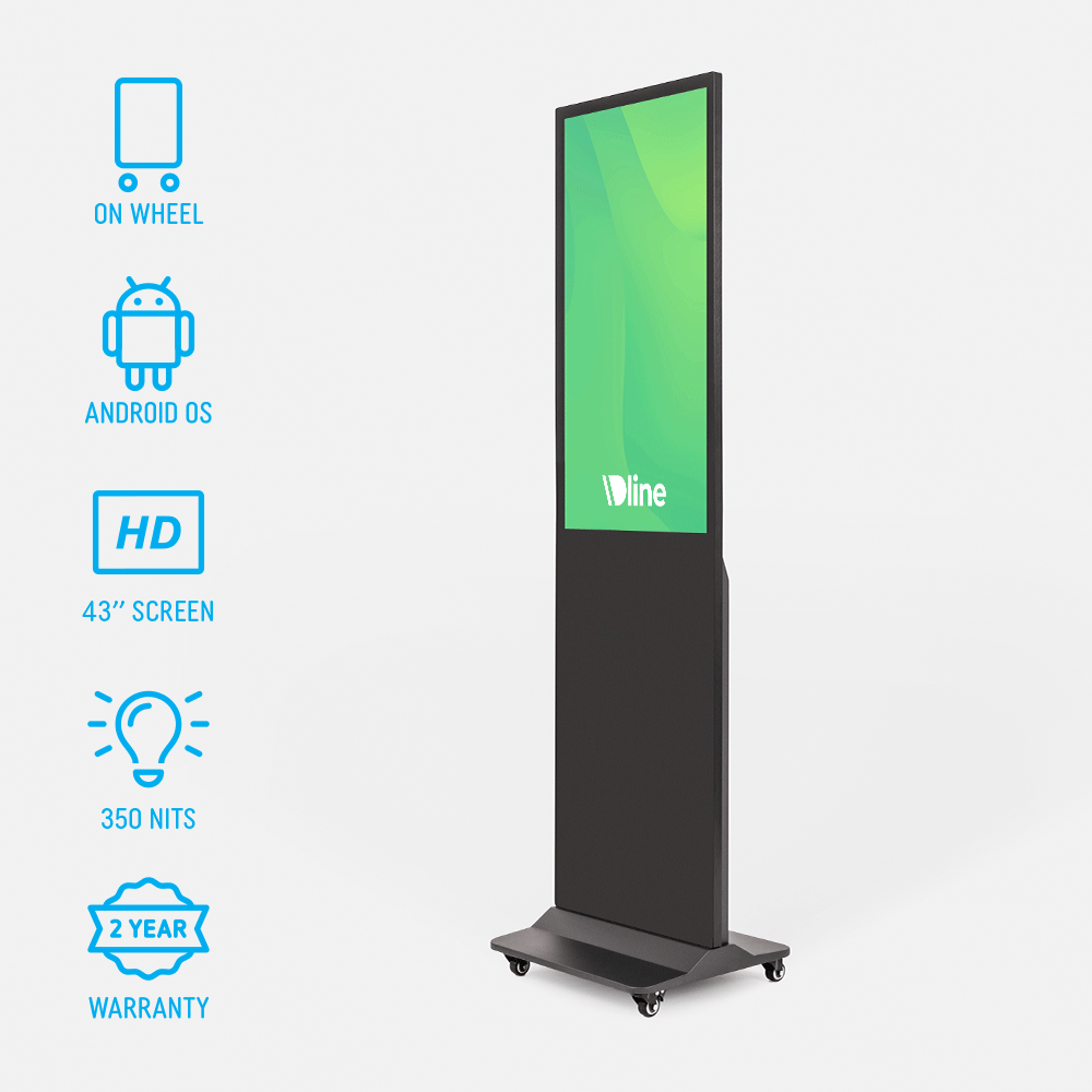 - Digital display totem has 43” screen with 1080p full HD resolution for vibrant content