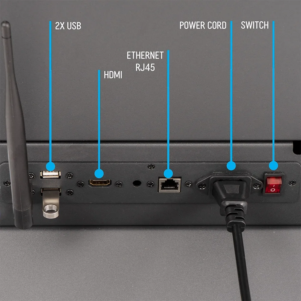 A digital display totem, like freestanding signage displays, is a floor standing unit that is rated for use up to 18 hours a day, providing reliable performance during business hours. The 583 x 1785 x 400mm display has the option to be used with wheels as well if you are in need of a display with more portability. The included casters are locking to help keep the unit in place after moving it into desired position while ensuring stability. The rear of the device features controls and multiple connection options, including two USB 3.0 ports, Wi-Fi antenna, Ethernet (RJ45) port, and power switch. A remote control is also provided to easily change go through options as well. This unit includes a 2-year warranty as well to provide you peace of mind with your investment.