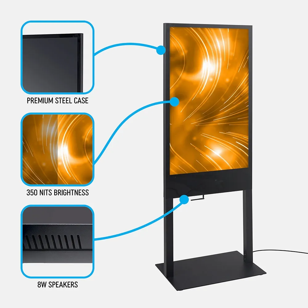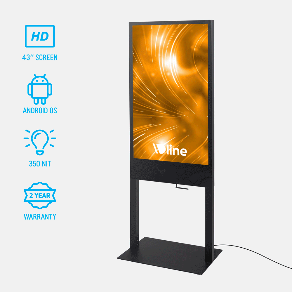 - Digital totem display has a 43” LCD panel with 1080 x 1920 resolution for vivid HD playback