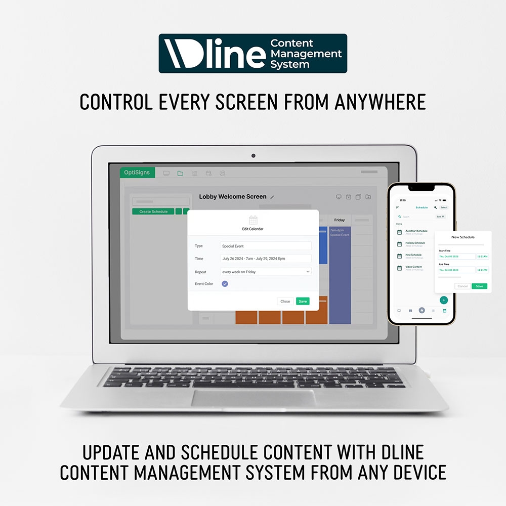 DLine Content Management System is your all-in-one digital signage software, powered by OptiSigns, designed to help businesses of any size deliver the right message at the right time on any screen. Whether you're managing promotions, internal communications, schedules, or branded content, DLine gives you full control over your digital displays, all from one easy-to-use platform.