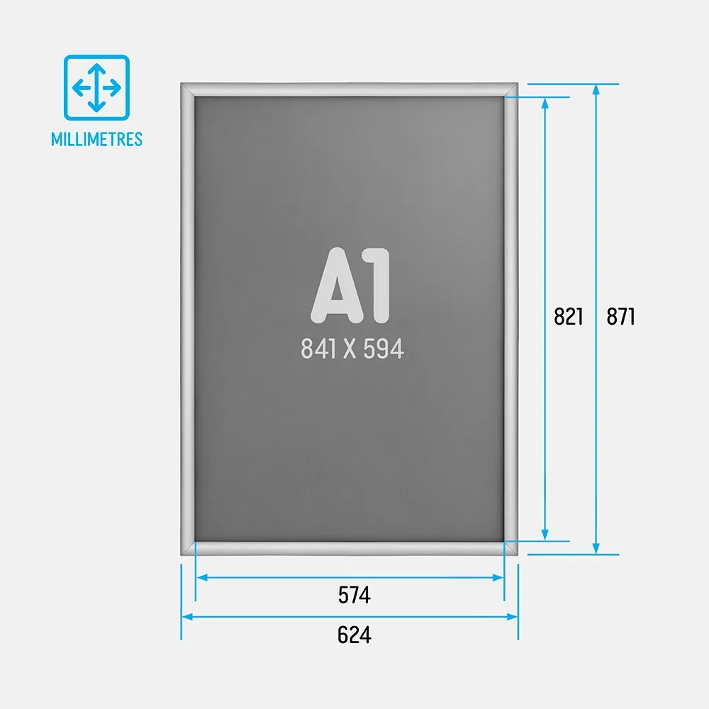 A sign frame can be used to highlight all your in-store promotions and signage. The clip frame has been designed to be user friendly. Simply lift the sides of the frame up and place the graphics between the frame and the plastic sheet. Updating advertisements and signs has never been easier with the clip frame. The frame is finished in matte silver- chosen to compliment your posters and advertisements. And all our snap frames are individually packed to minimise the chances of damage during shipment. Choose from a range of sizes that include A0, A2, A3, A4 & a larger 1700 x 600mm, 870 x 327 mm size.