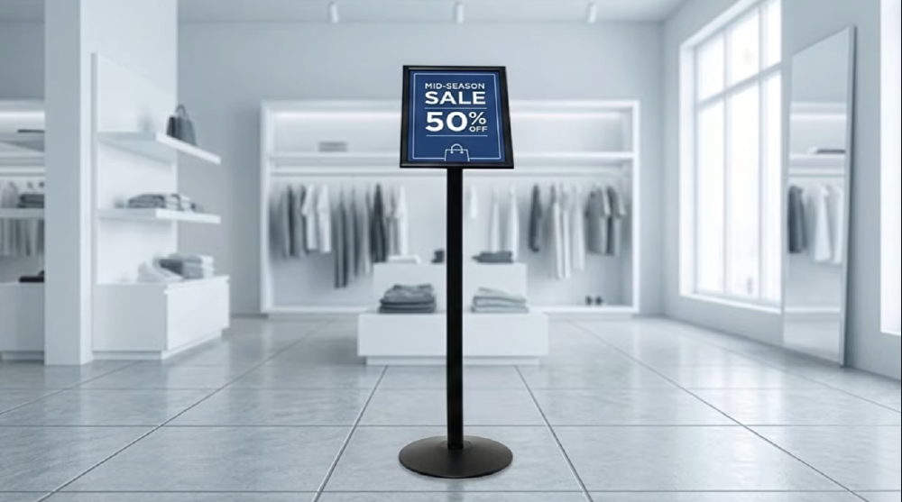 This curved sign holder, like many of our poster stand, can be used in both portrait or landscape orientation for added versatility. Made from durable steel, this stand is sturdy but also lightweight to allow you to move your display as required with ease. The sleek white design fits easily into many décor settings for any businesses such as at cafe entrances, shopping centre aisles, office lobbies, libraries, and more.