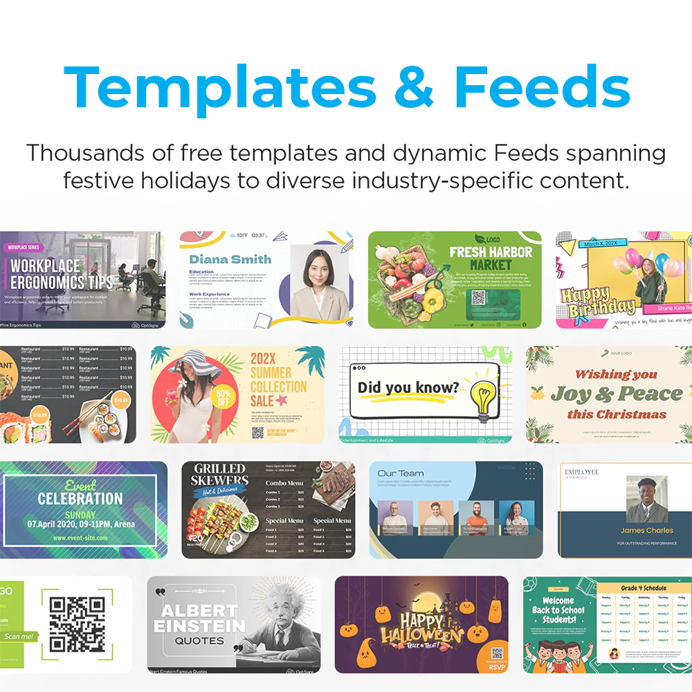 - Easy Content Creation, 5000+ ready to use templates and easy to use designer help you design your digital signs in minutes