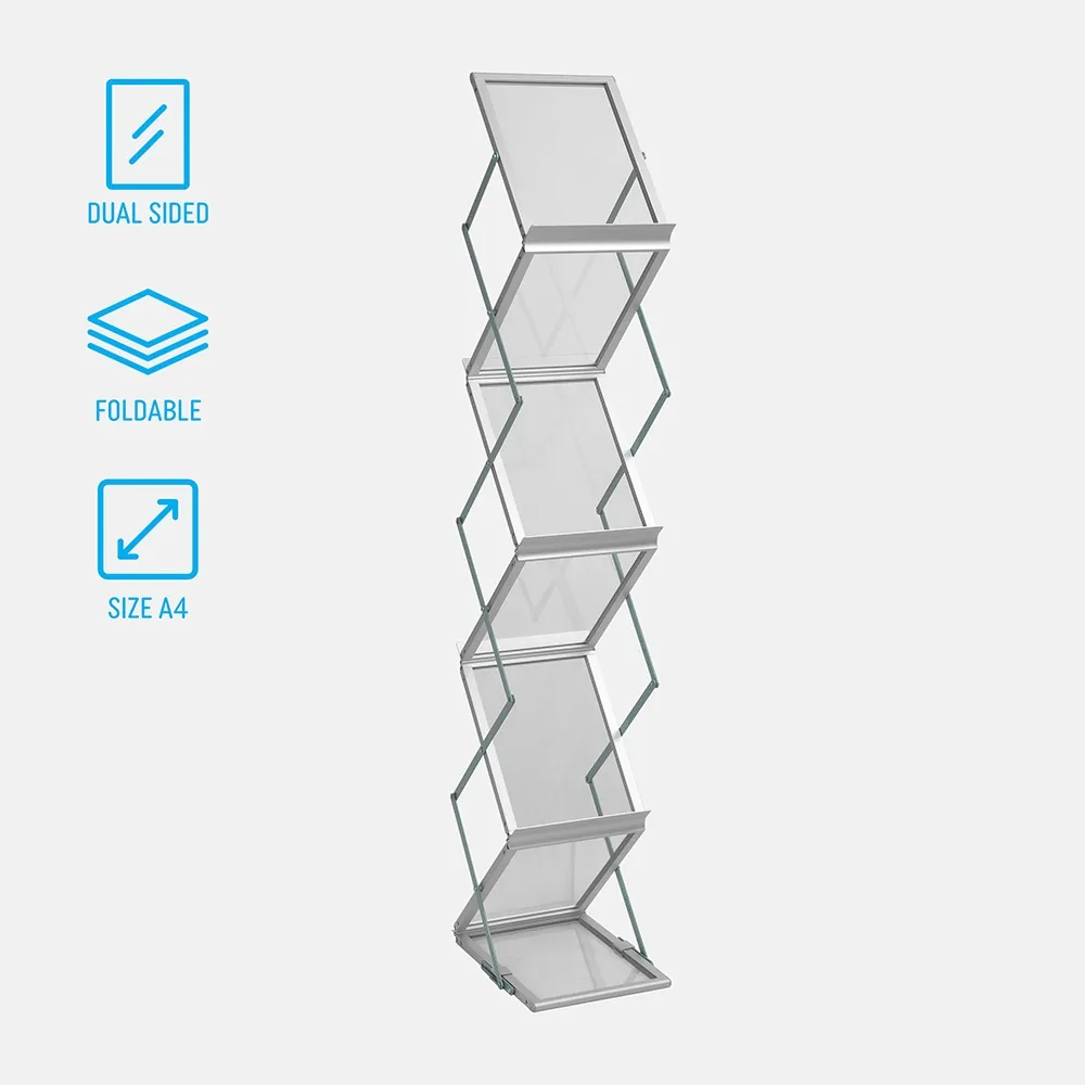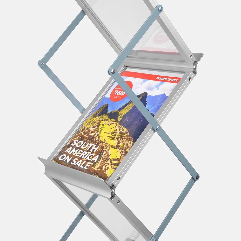 This Portable Brochure Holder is great for mobile salesmen and exhibitions. It literally is expanded or collapsed in just seconds and without the need to remove your brochures from the display shelves.