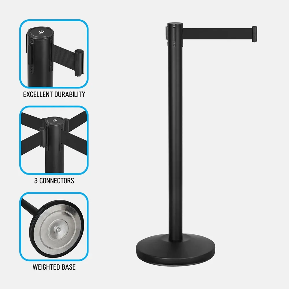 - Retractable barrier posts include 1 post at 1.05 metres and 1 retractable belt at 1.8 metres in length. We package the stanchions carefully to minimise the chances of damage during freight.