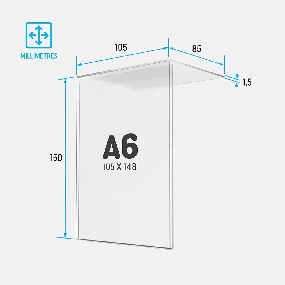 Compact A6 sign holder clear displays or shelf talker help Australian retailers present small-scale information in tight shelf spaces, checkout counters and impulse zones. The compact PET frame supports pricing, QR codes, short notices and product highlights in high-movement areas.