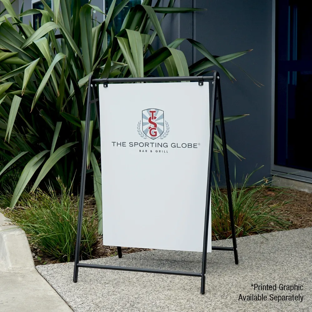 This A-frame signage is made from matte finish metal to be long-lasting and lightweight, with the entire display weighing only 5.5kg. A black finish provides a classic look that fits in well with the style of any location. The display is easy to assemble in minutes using only simple tools. Slimline Warehouse offers same day shipping to anywhere in Australia with this and most other in stock products when purchased by 3pm AEST, buy online today for fast dispatch nationwide!