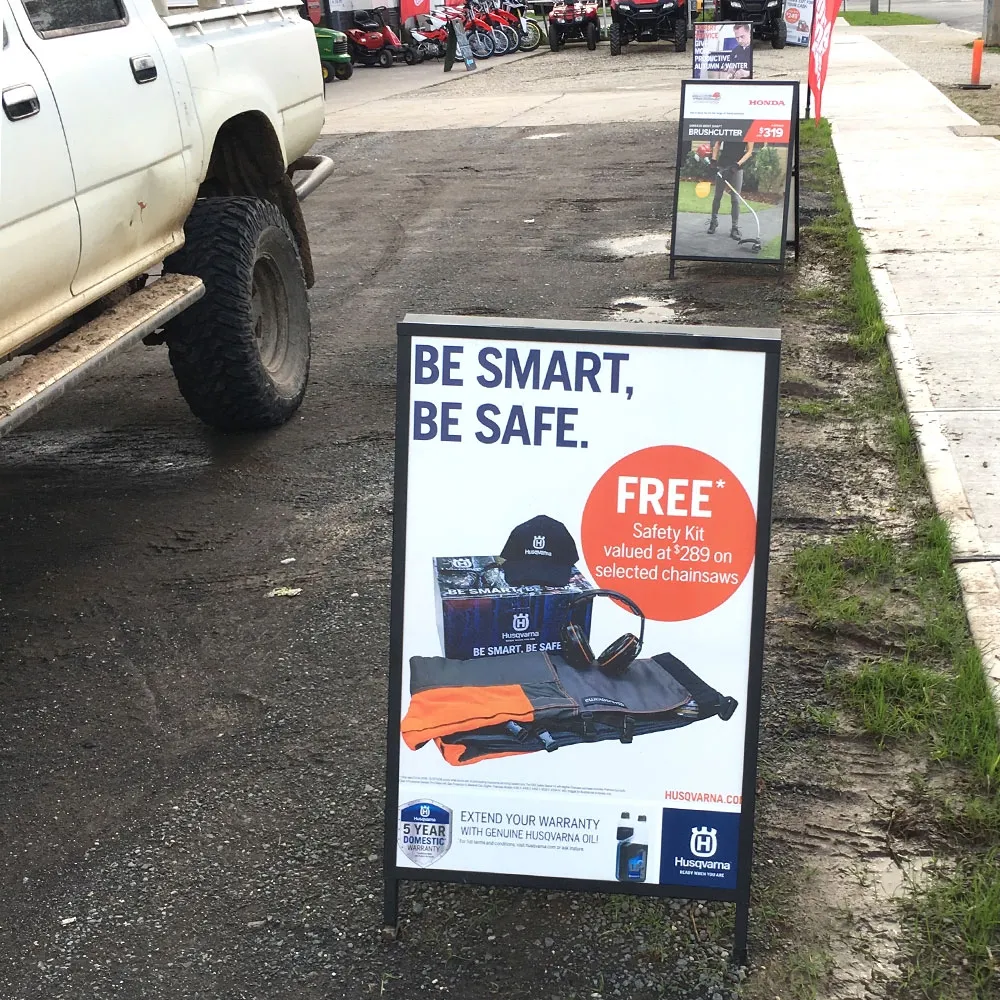 Built for practicality, this A-frame sign folds flat for compact storage and easy portability, making it ideal for businesses that frequently change locations or need to store signage when not in use. The sturdy steel hinge keeps the board securely open while in use, and rubber feet provide stability while protecting indoor floor surfaces from scratches. Whether positioned in front of a store, inside a shopping centre, or at an outdoor event, these signs offer a professional and versatile display solution. Slimline Warehouse ensures fast, secure shipping Australia-wide, delivering high-quality signage straight to your location.