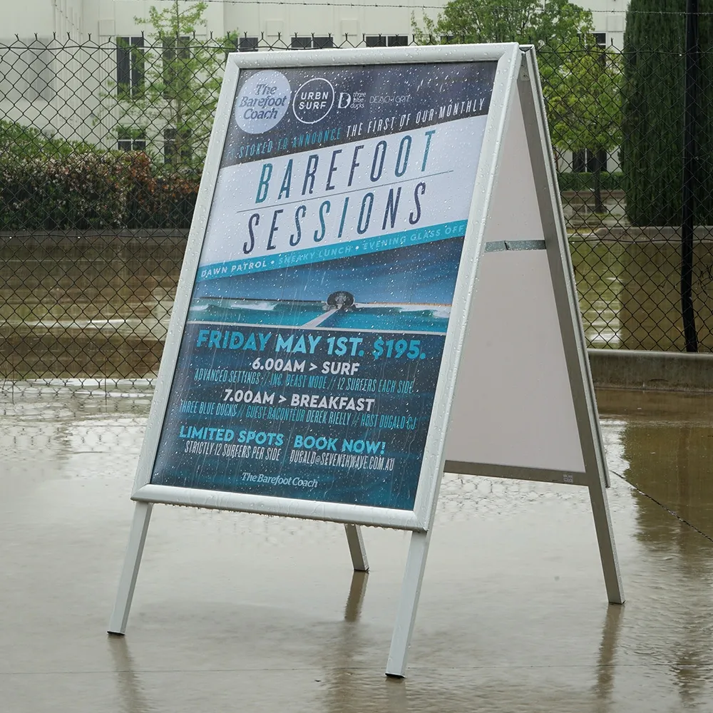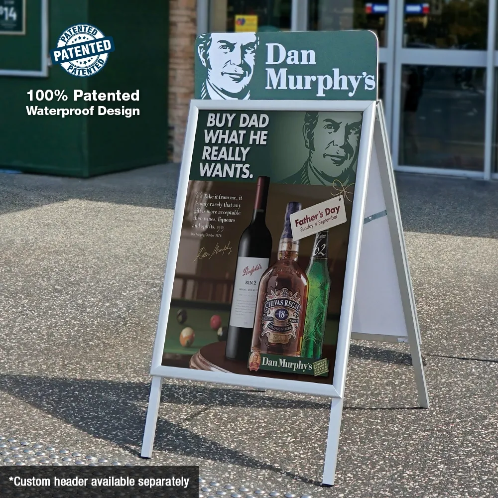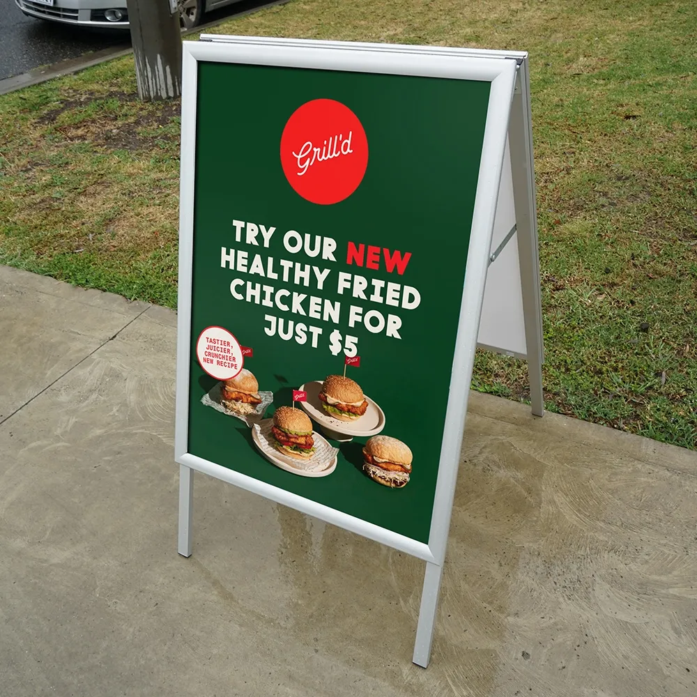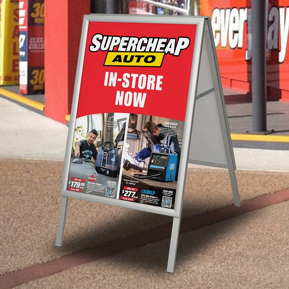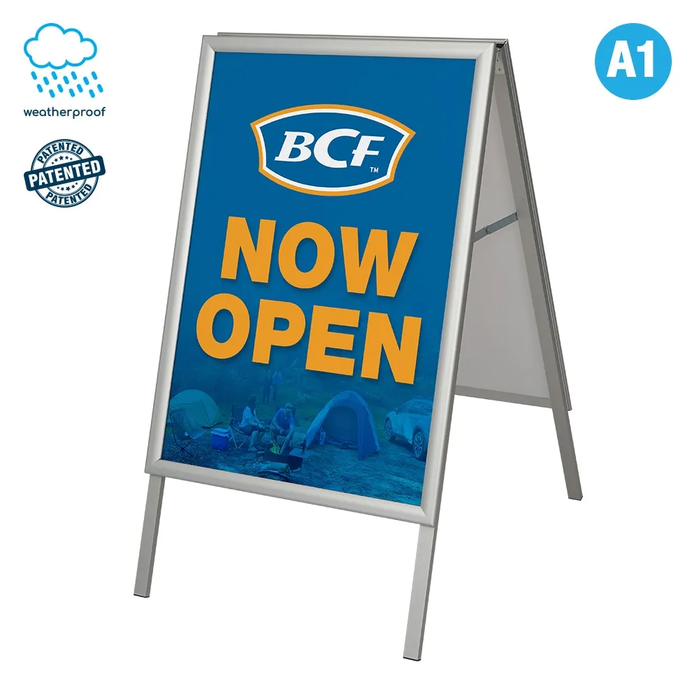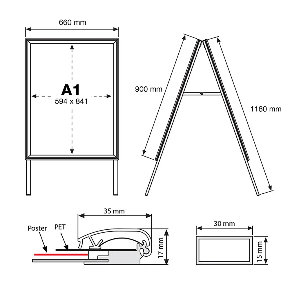 - A Frame advertising boards display A1 (594 x 841mm) posters on each side