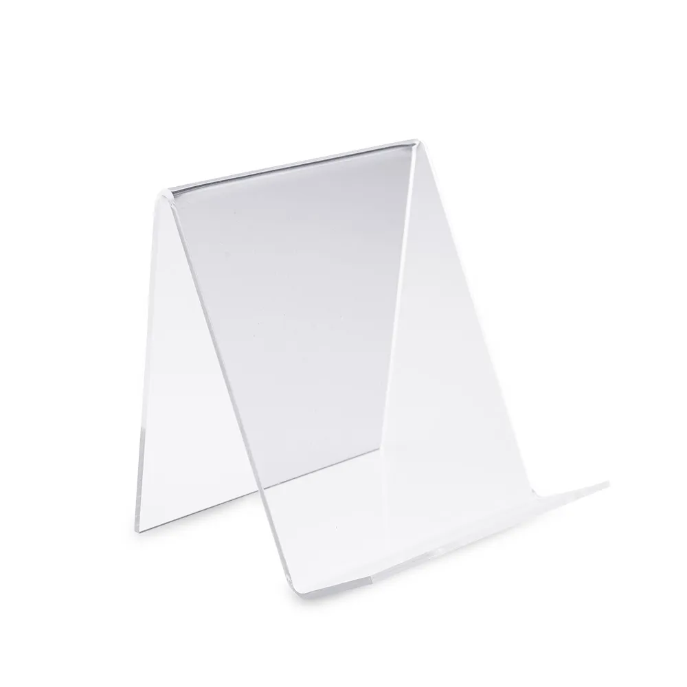 - Acrylic display stand angles displayed items for easy visibility on tables or counters
