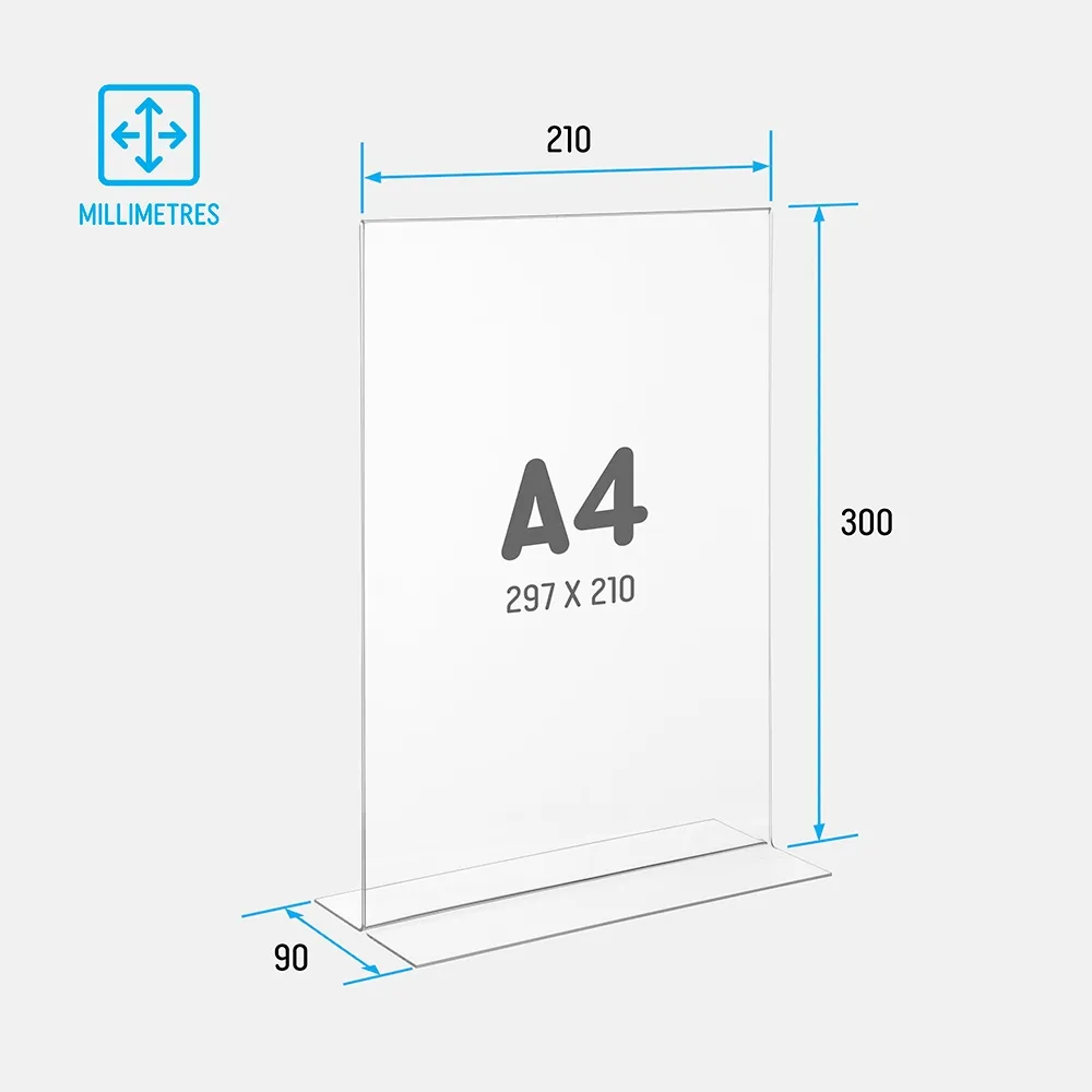 To add advertisements to the sign holder, slide your A4 sheet into the side of the unit. Updating advertisement becomes a simple task for your staff and they can be displayed and updated easily.