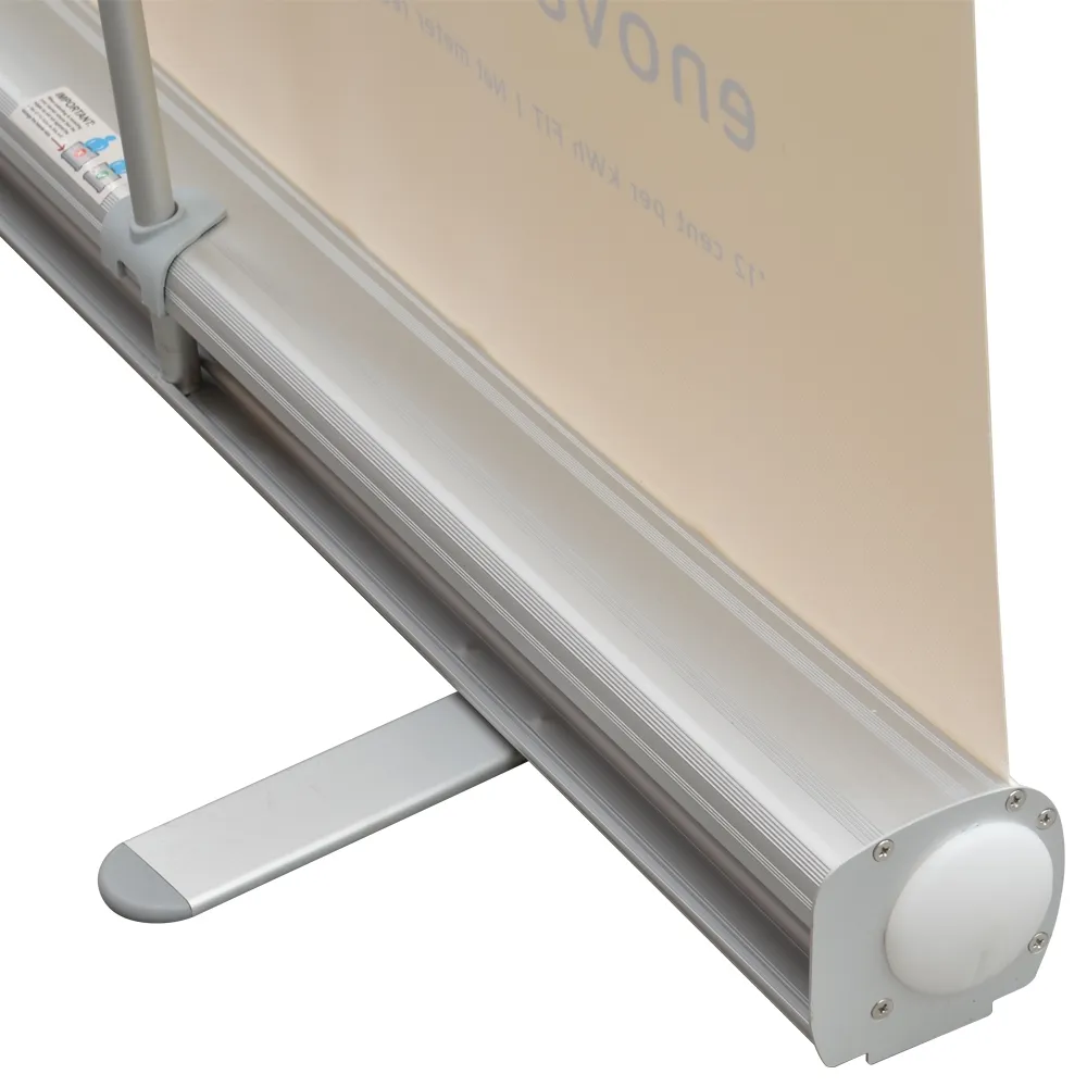 The base of this unit is made out of aluminium with a silver finish, offering a neutral look for use anywhere. The strong build ensures long-lasting use in any location, and there are two slide out feet to provide a stable bottom for the graphic when extended.