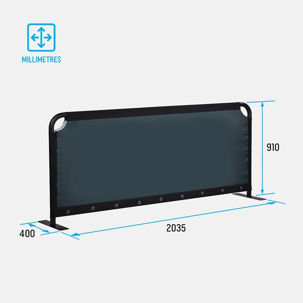 - Canvas barrier feature black aluminium frame designed for indoor or outdoor use