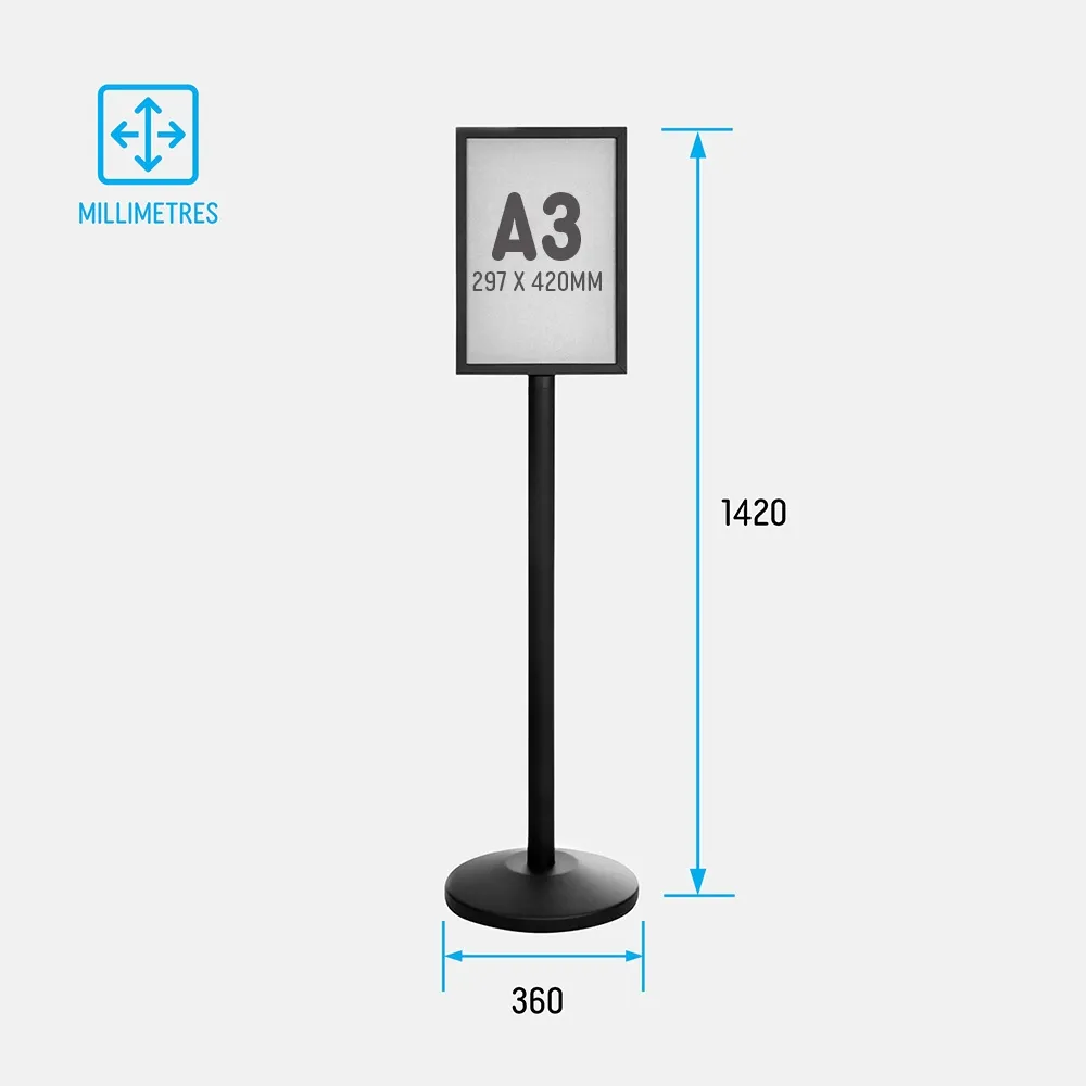 - A3 floor standing poster display is dual-sided to reach more passersby at once!