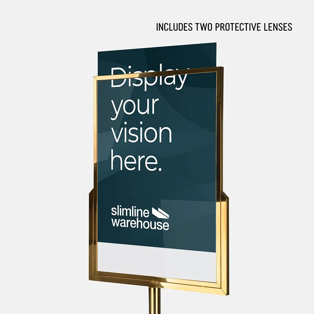 The sign stand holder is meant to hold A1 (594 x 841mm) posters in portrait orientation. This large poster size is perfect for capturing attention, and the slide-in design makes it easy to switch out graphics without any tools necessary. The floor poster stand also has 2mm thick clear acrylic panels included that help to keep the posters free of grime or dust during display as well as deterring vandalism. These panels are also easy to clean with standard products, allowing you to maintain a professional look in your business.
