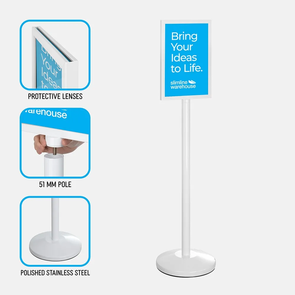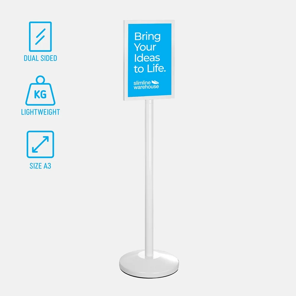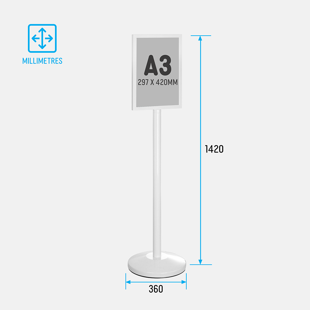 - Pedestal sign stand holds an A3 (297 x 420mm) poster in portrait orientation