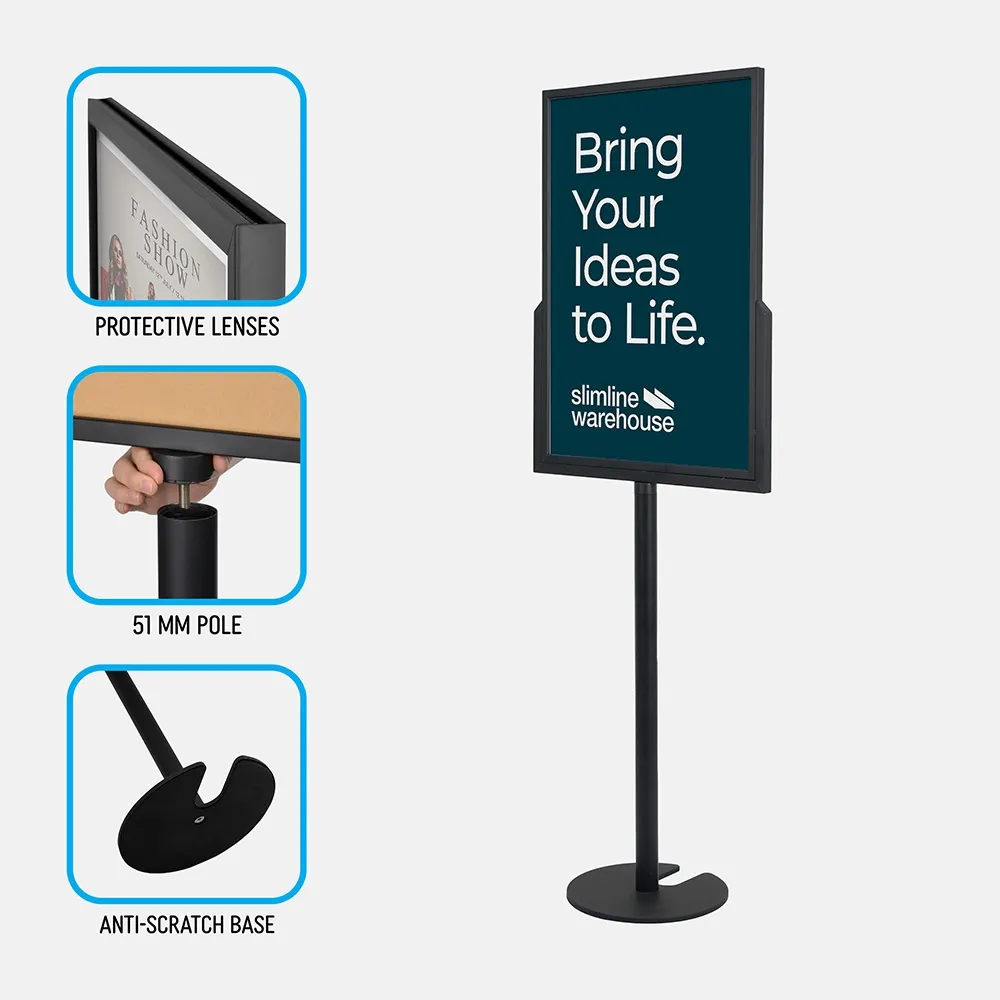 - A1 poster stand is dual-sided display to easily promote in 2 directions at once