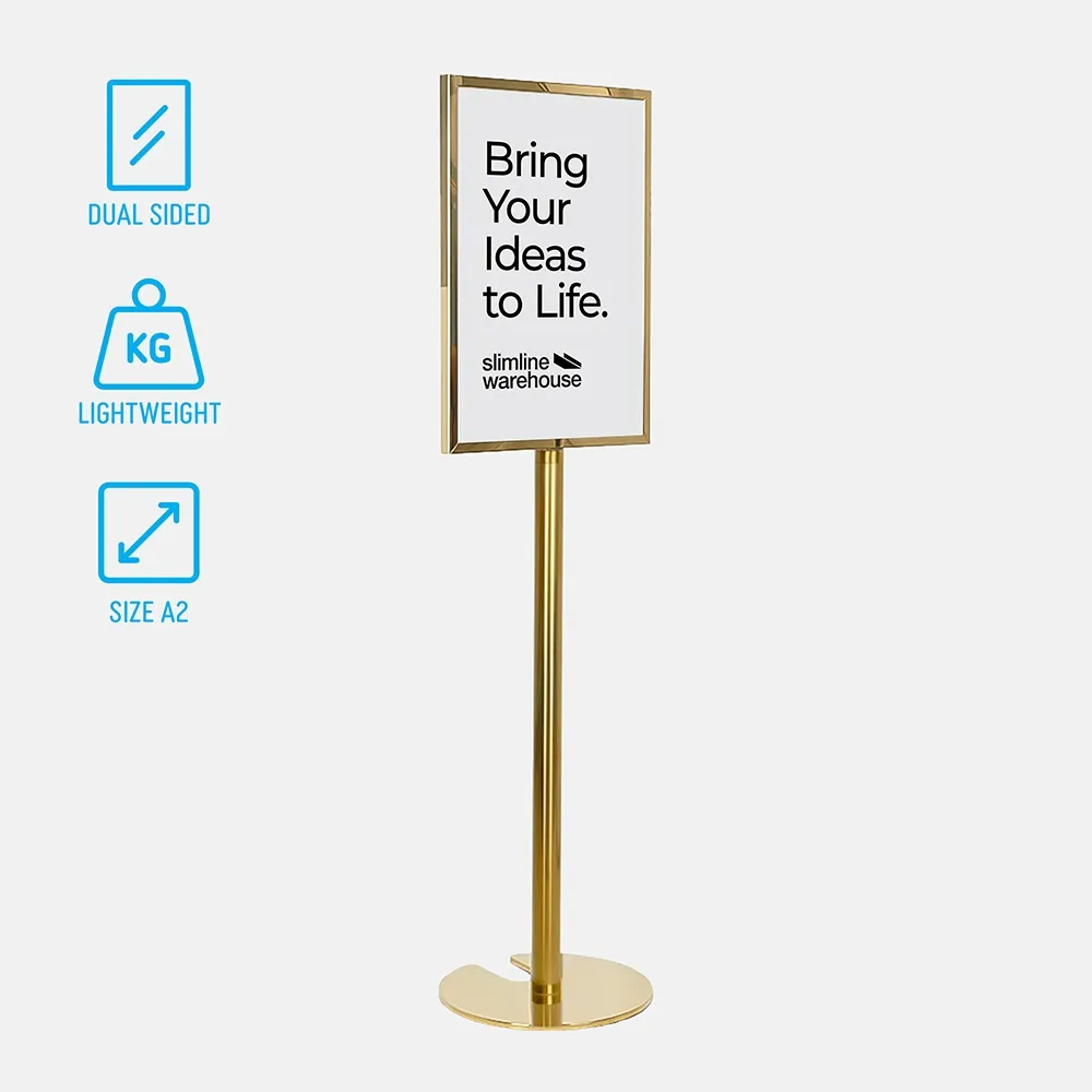 These displays are finished in bright gold, offering a sleek and professional aesthetic that enhances any displayed content. At 11.2kg, they are lightweight enough for easy positioning while remaining sturdy for long-term use. Ideal for promotional signage, directional displays, or branded messaging, this stand is a valuable addition to any business. Slimline Warehouse provides fast shipping across Australia—order today to upgrade your advertising displays!