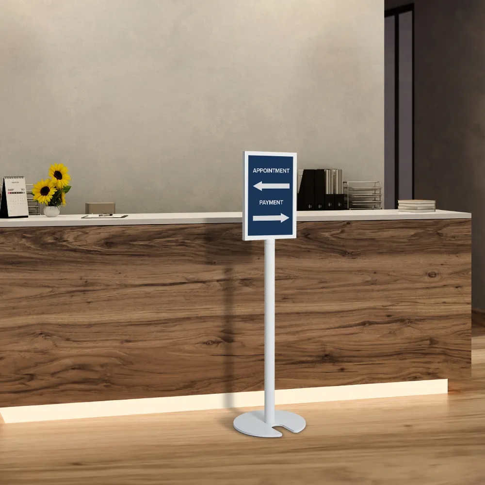 This A3 poster holder is a reliable and attractive solution for displaying advertisements, promotional content, or informational signage. Commonly found in retail stores, shopping malls, trade show booths, museums, and hospitality venues, this freestanding sign holder maximises exposure thanks to its dual-sided display that offers visibility in multiple directions at once. The white frame holds A3 (420 x 297mm) posters in portrait format and features a slide-in design to allow graphics to be quickly changed in seconds without requiring tools. This style of holder is perfect for locations that frequently update signage.
