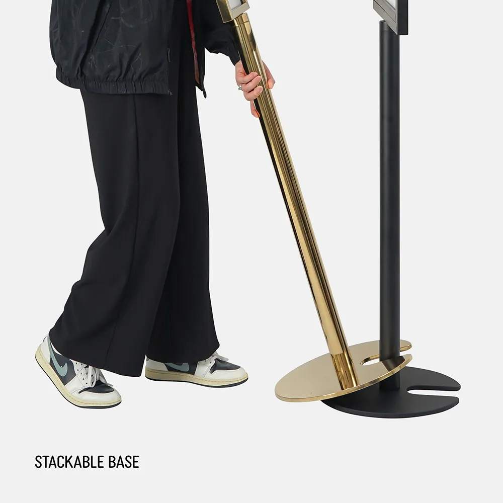 With a bright gold finish, this free standing display adds a sophisticated look to any setting. Weighing only 7.5kg, repositioning the display is easy for any employee, with most weight concentrated in the base to ensure stability in high-traffic areas. Whether used to highlight promotions, event details, or essential business information, this stand is a functional and stylish choice. Slimline Warehouse ships Australia-wide with fast delivery—order today to enhance your signage display!