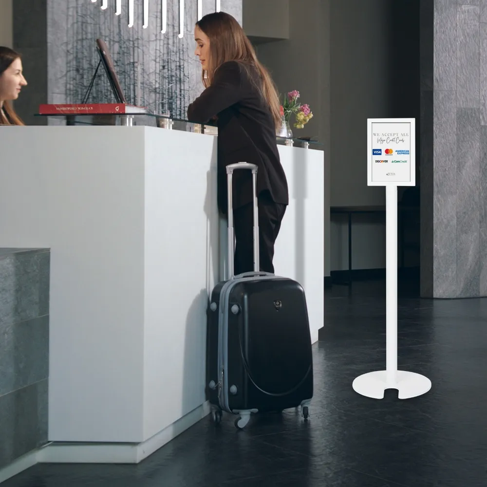 This A4 poster holder is a compact display designed to showcase promotional content, directional signage, menus, and other information in an eye-catching manner. Perfect for use in retail stores, shopping centres, cafes, corporate offices, waiting rooms, museums, trade shows and more, the 2-sided frame maximises visibility in multiple directions tat once to increase passersby awareness. The frame holds A4 (297 x 210mm) posters in portrait format, offering a versatile solution for various settings. The slide-in design ensures quick and tool-free poster swaps in seconds, allowing businesses to refresh their messaging with ease.