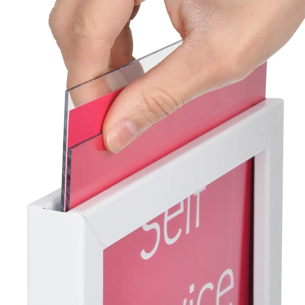 - A4 poster holder provides a dual-sided display for clear signage presentation