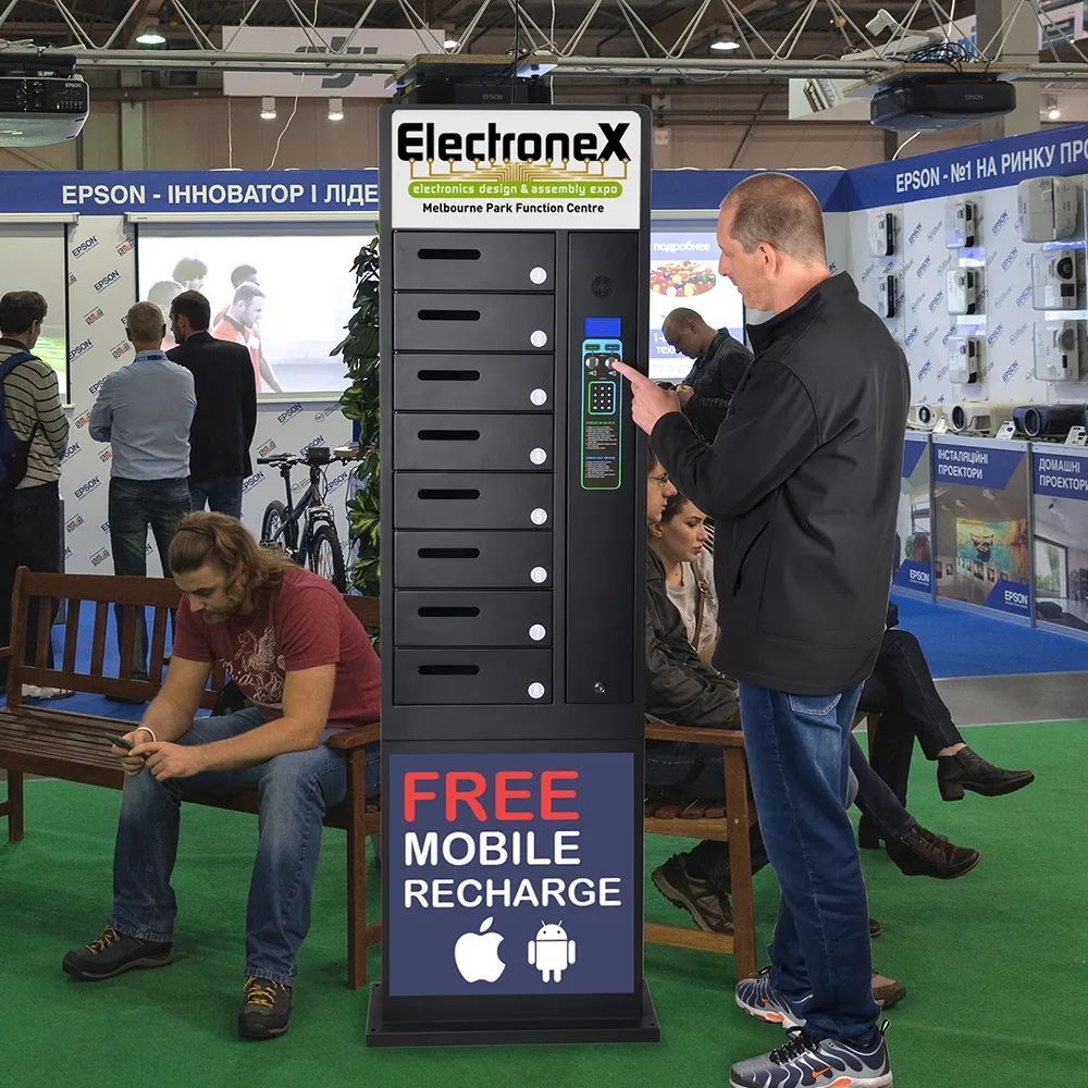 - Phone charging lockers features 8 units each with Lightning, USB-C & micro USB cables