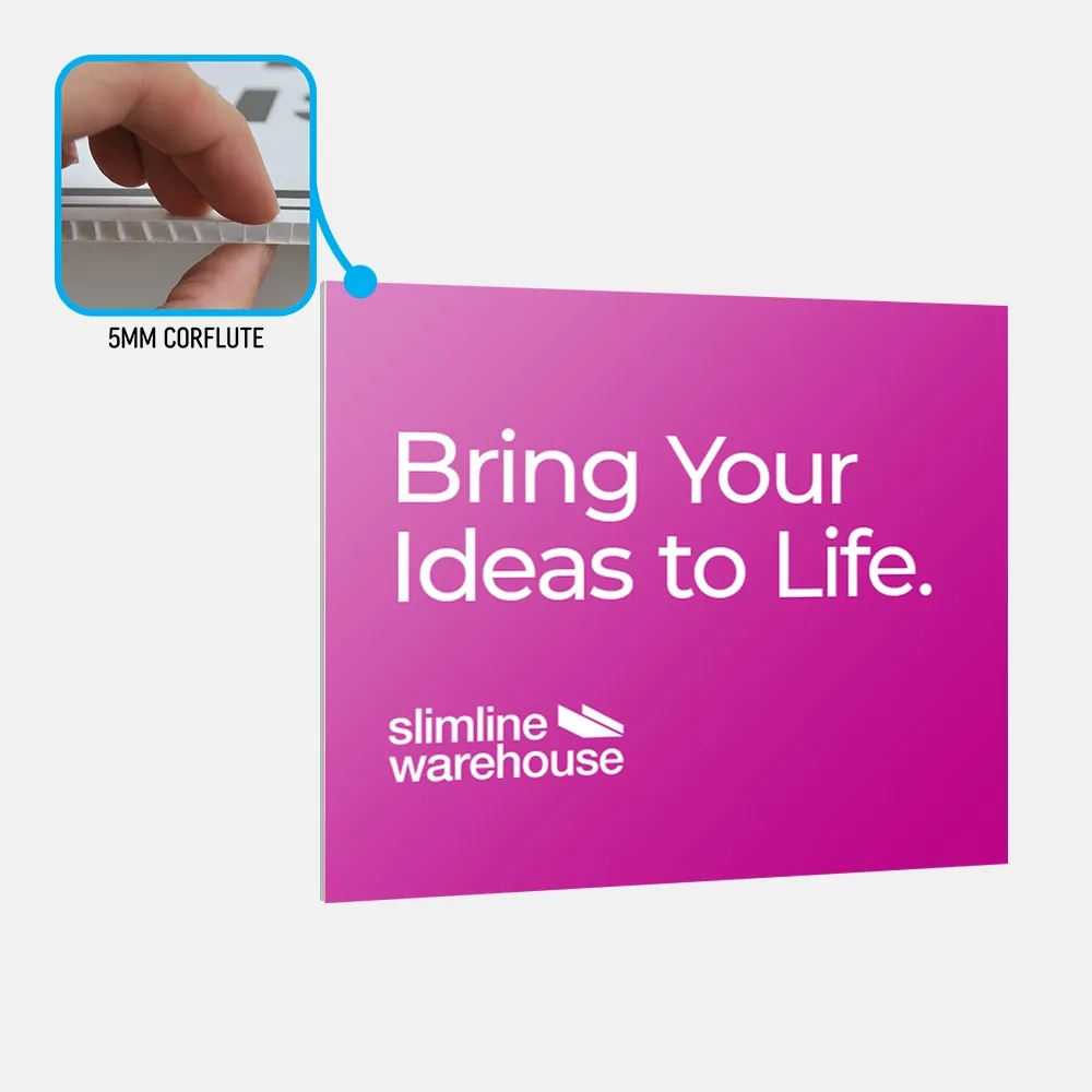 The double sided print corflute, compatible with Yard Signs – ODWS10BK, is built from durable 5 mm waterproof material that performs in all weather conditions. Each side is printed with the same attention to clarity and colour accuracy, ensuring your signage looks polished from every viewing angle. Weighing just 0.01 kg, it’s lightweight and easy to handle while maintaining a rigid structure that prevents bending or wear. Reliable and professional, it’s made to last through repeated use across a wide range of environments.