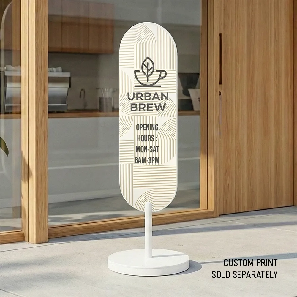 Designed for cafés, bakeries and market stalls, it solves limited wall space and fast-changing layouts. The compact base keeps walkways clear while allowing signage to move with foot traffic. Lightweight construction and quick assembly make it practical for daily setup, outdoor frontage and pop-up promotions where speed and flexibility matter.