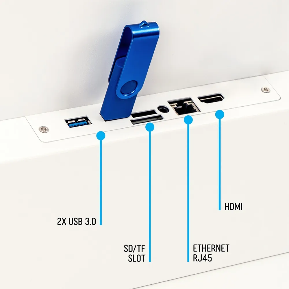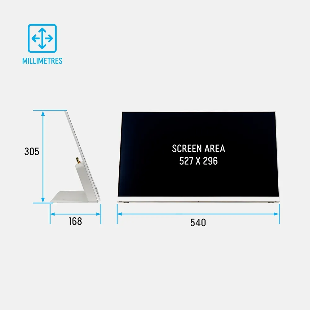 The 24 touch screen monitor features a robust steel build with a white finish for a clean and modern aesthetic. There is a remote control include for easy navigation during setup or content updates, while multiple built-in connectivity ports support a wide range of peripherals. The unit has 32GB of storage and 2GB RAM to hold heaps of content and not be slowed down. Order online today by 3pm AEST to receive same day shipping Australia-wide when in stock with this and most other products, only from Slimline Warehouse!