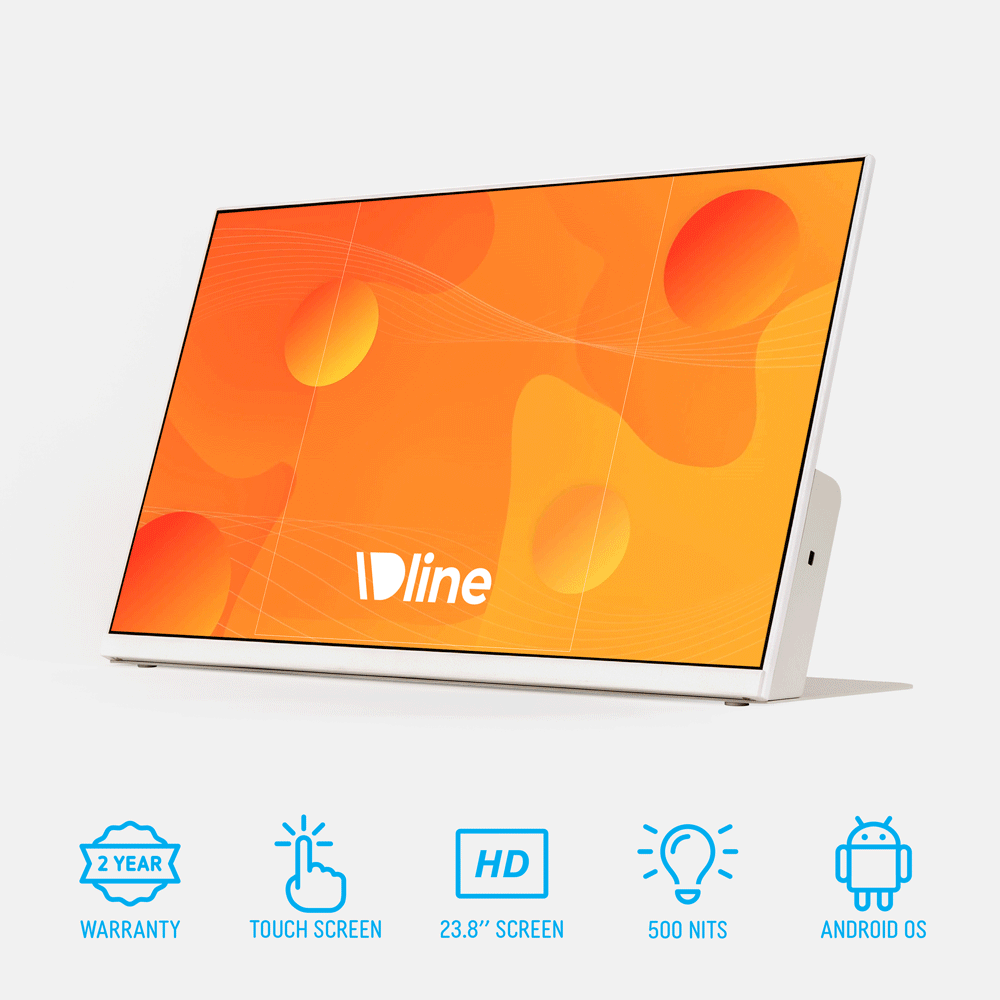 An interactive digital signage kiosk is a versatile display solution designed to enhance customer engagement using the latest in technology to help upgrade your business. This countertop unit features a 23.8” full HD touchscreen, offering users to direct interaction with menus, service options, and more. The landscape display has an FHD 1920 x 1080 resolution with 500 nits brightness, ensuring clear visibility in any lighting conditions. The integrated Android® 11 OS is compatible with a wide range of Apps to display images, videos, PDFs, forms and more, allowing use as visitor check-ins, product demonstrations, promotional content and everything in between. Content can be easily updated via USB, Wi-Fi, Ethernet, or microSD card, allowing quick changes without downtime.