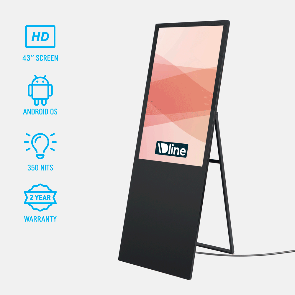 - Digital A frame has built-in 43” screen with 1080p full HD resolution (1920 x 1080)