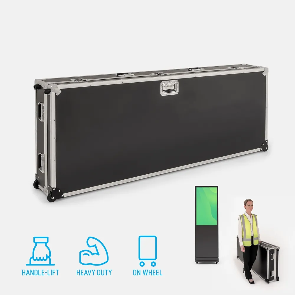 Storage case for 43" digital totem solutions help Australian businesses move kiosk displays safely between sites where unprotected transport often leads to cracked panels, scratched housings or cable loss. This digital signage transport case 43" design uses padded protection and reinforced walls to keep tall screens stable during retail transfers, event bump-ins and corporate relocations. The wheeled digital signage case 43" format improves handling in tight spaces.
