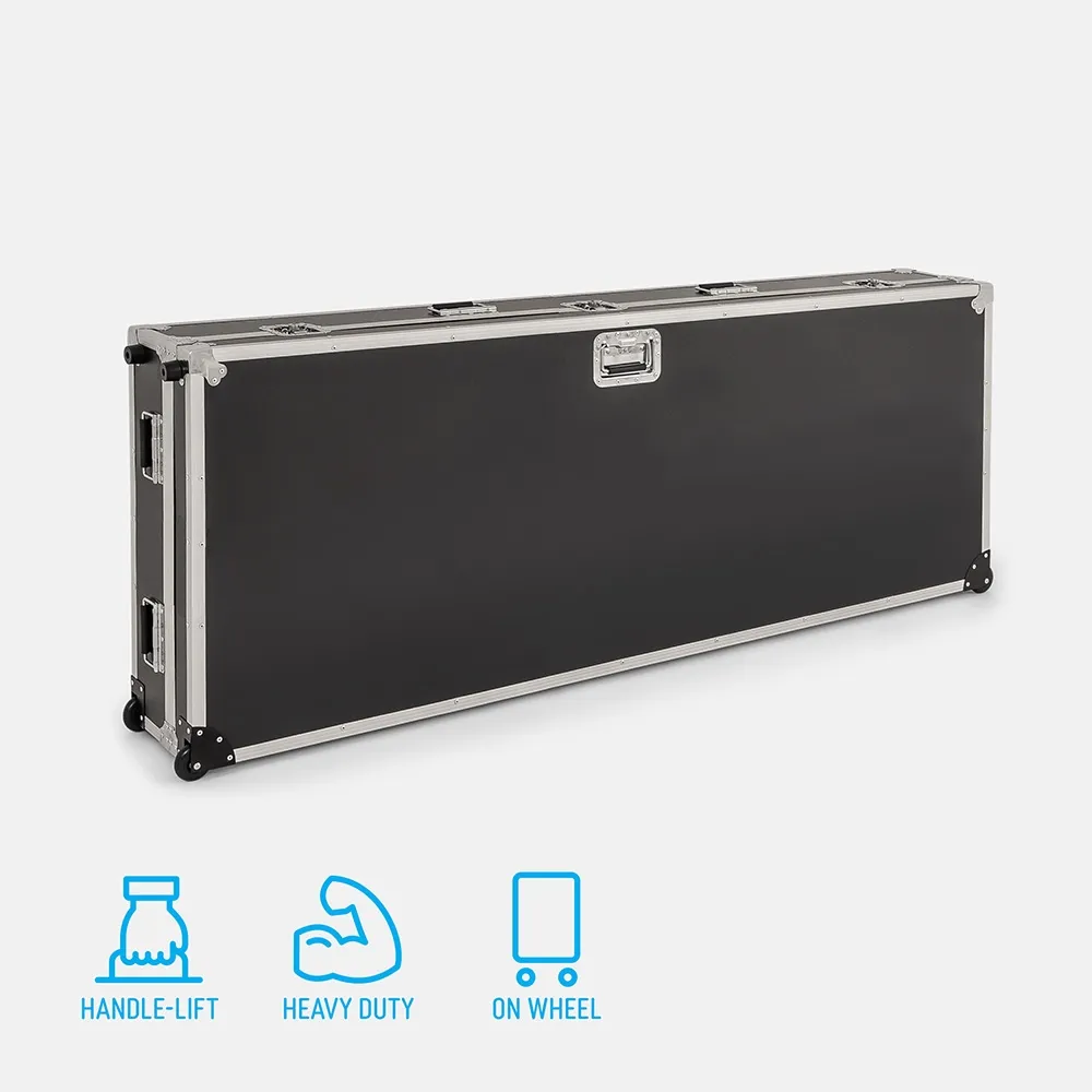 Multi-site retailers, shopping centres, government facilities and education campuses rely on this road case for 43" digital display units to reduce manual lifting risks. Staff can manoeuvre the unit with smooth-rolling castors, while internal strapping maintains upright positioning in storage rooms, corridors and loading docks. It is suited to AV operators managing frequent screen movement.