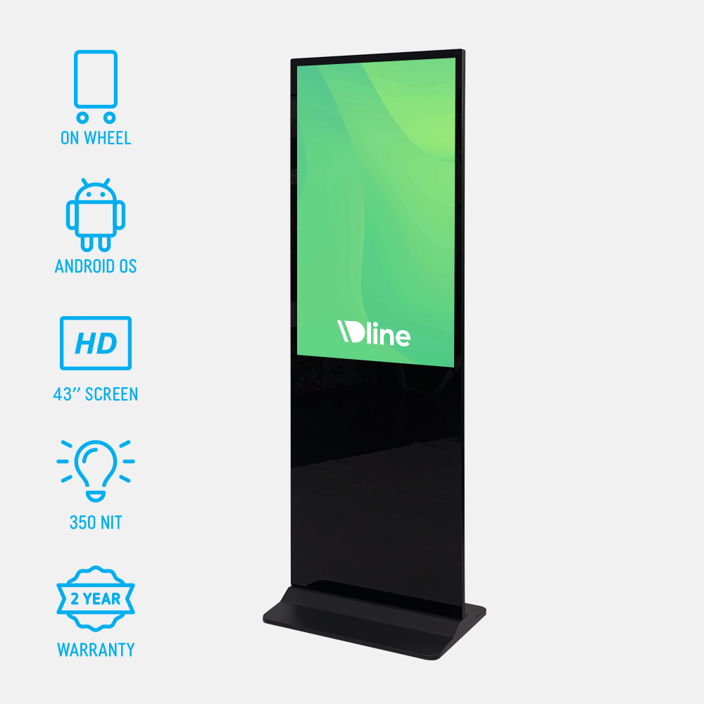 - Digital display totem has 43” screen with 1080p full HD resolution for vibrant content