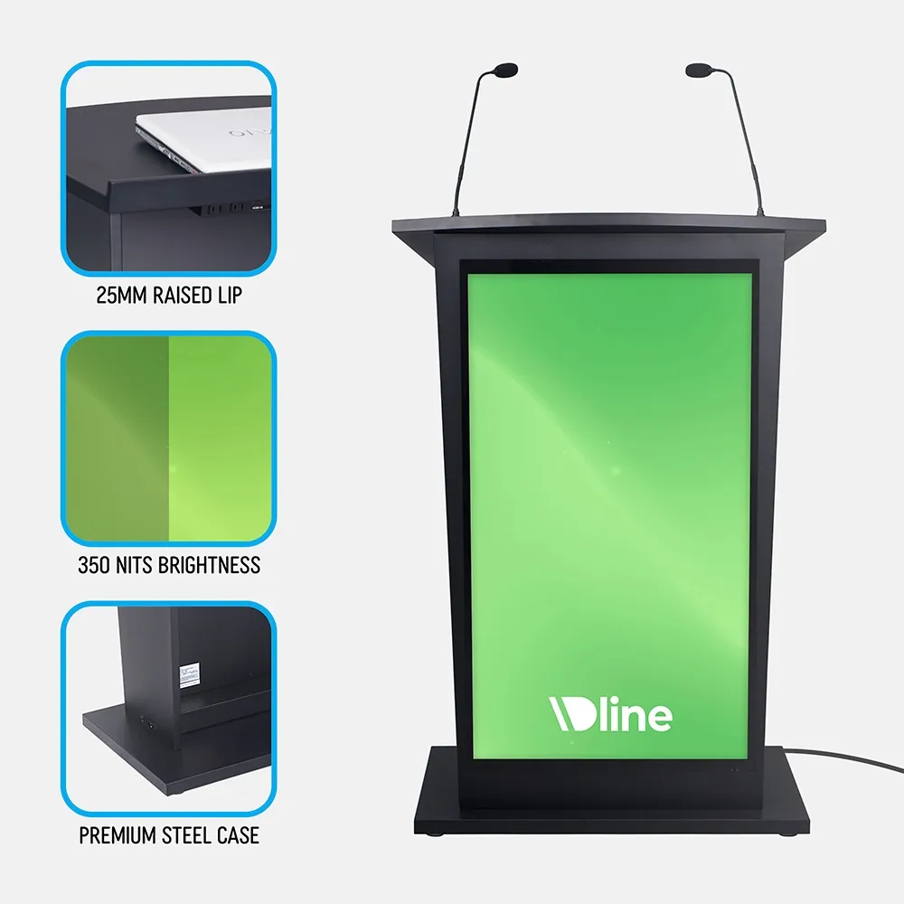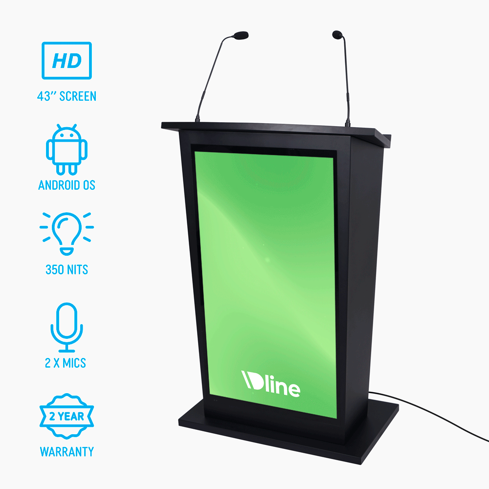 - LCD digital display lectern has 43” screen in 1920 x 1080 full HD resolution with 8-watt speakers