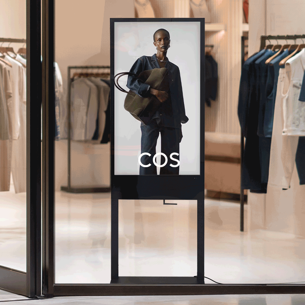 - Digital totem display has a 43” LCD panel with 1080 x 1920 resolution for vivid HD playback