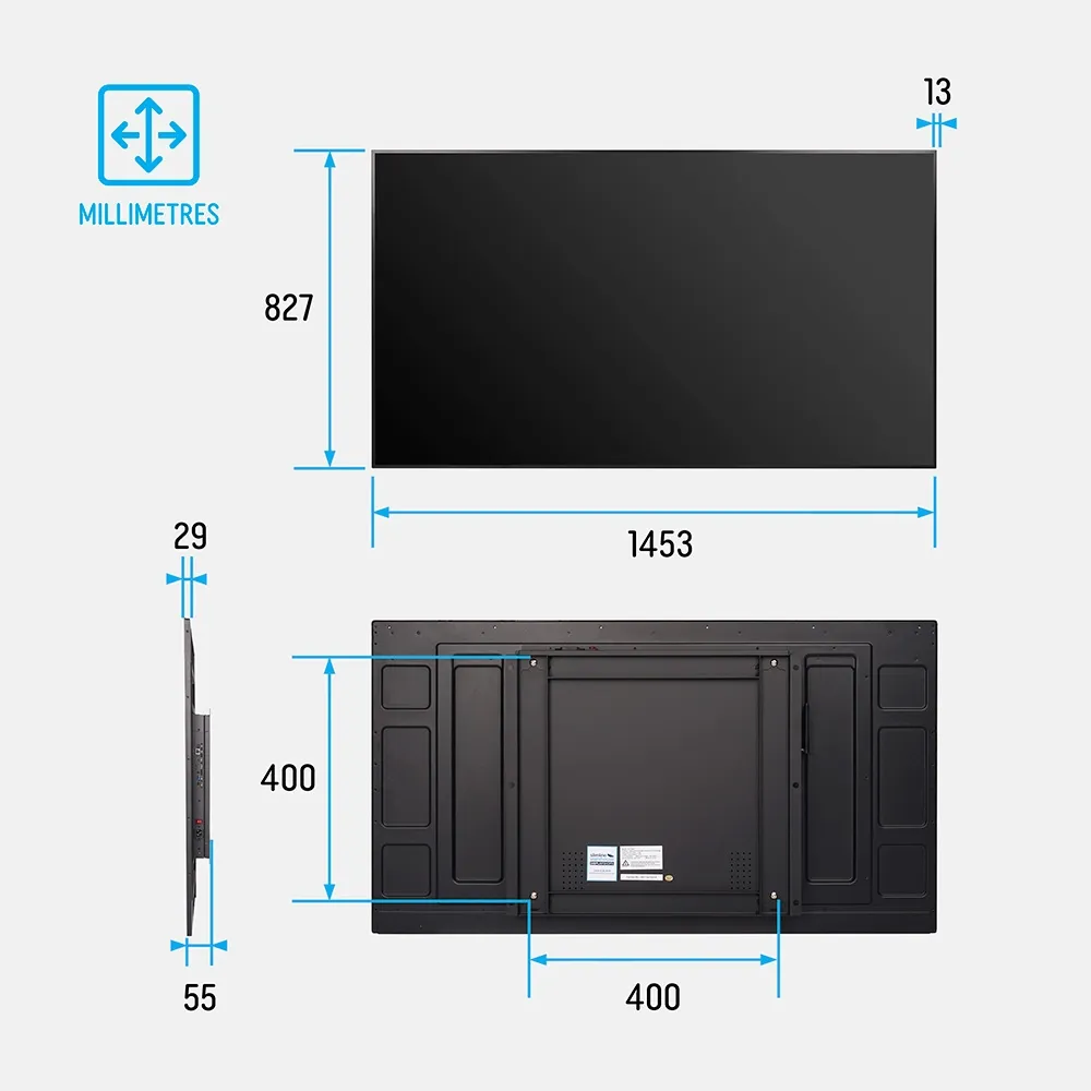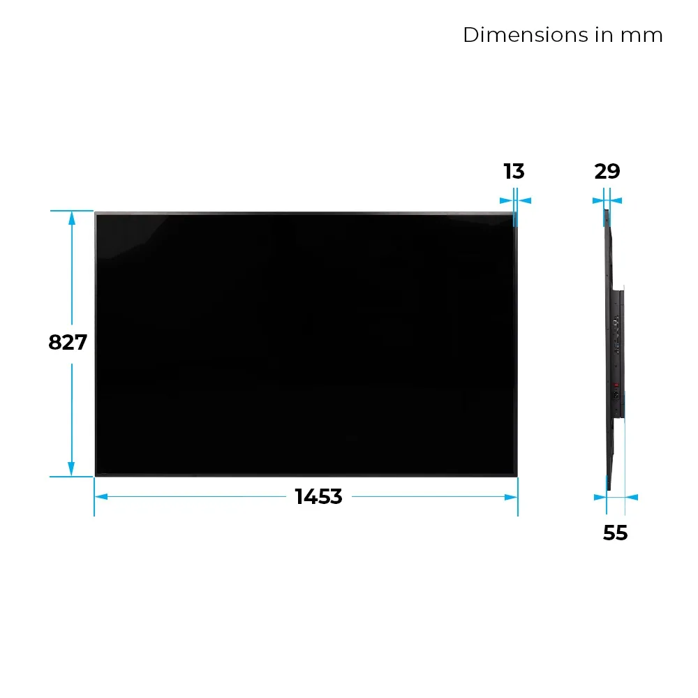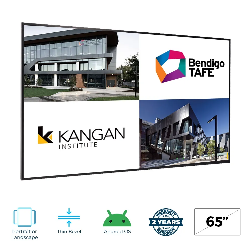 These digital commercial displays provide a eye-catching display for promotions or information in retail stores, convention centres, office buildings, transport hubs, and more. The large 65” screen has full HD 1080p resolution (1920 x 1080) for vivid colours and crisp visuals that look stunning. Android® 11 OS is built-in, enabling access to the Google Play store for a variety of compatible Apps and media tools for displaying content as you wish. It allows for content upload via USB, app, or cloud-based software. The display includes 32GB of internal memory and 2GB of RAM, offering plenty of storage space and smooth performance for video, image, and web content. Every purchase includes a 2-year warranty to give users peace of mind with their investment.