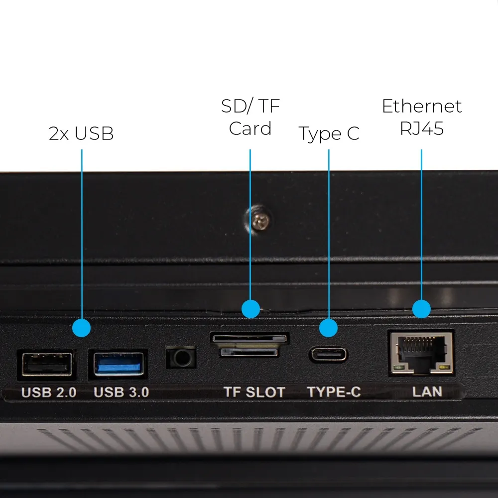 Connectivity | TF Card Reader, Antenna, Ethernet LAN RJ45, Audio Output, USB3.0, USB2.0, Type-C |