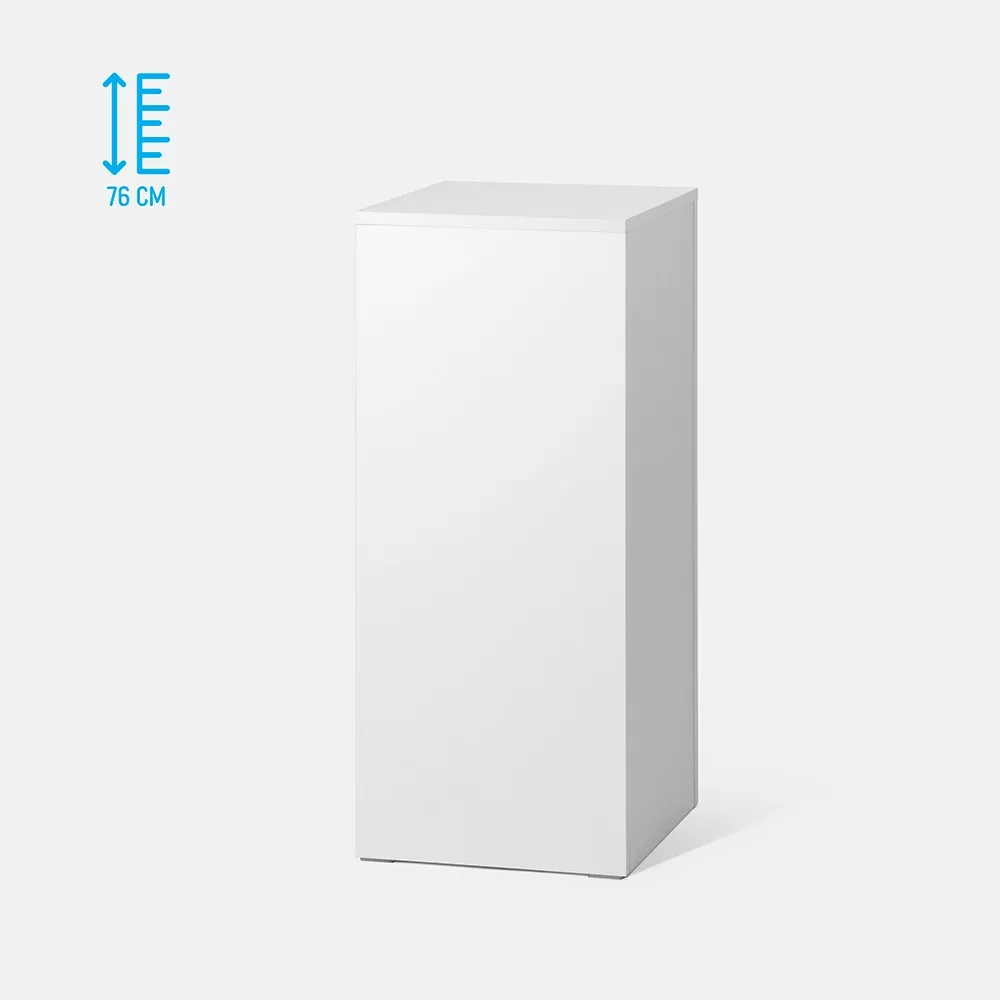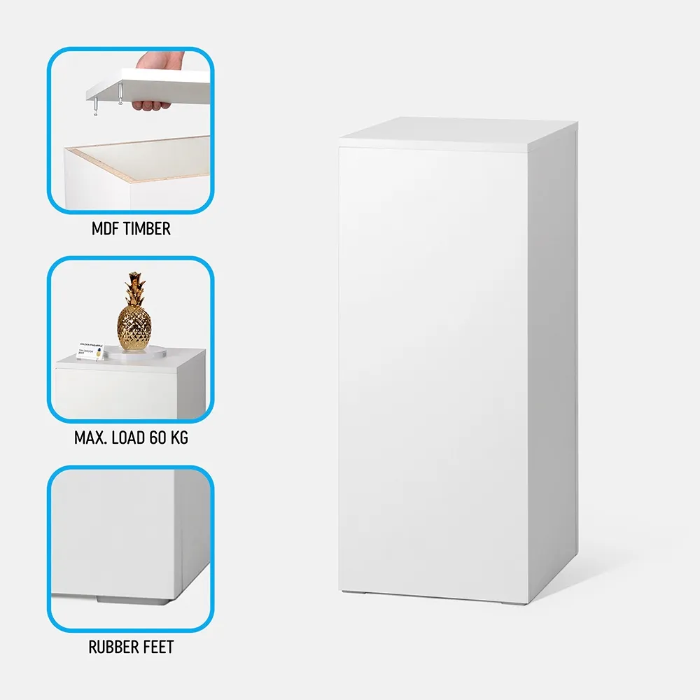 This merchandising plinth, white display pedestal is a great way to showcase products or items in shopping centres, art galleries, retail stores, and museums! The 76cm tall display helps displayed items to really stand out and entices customers to take a closer look. Using a plinth such as this allows visitors to fully examine items on each sides, especially helpful when displaying unpackaged goods to offer a true view of the product.