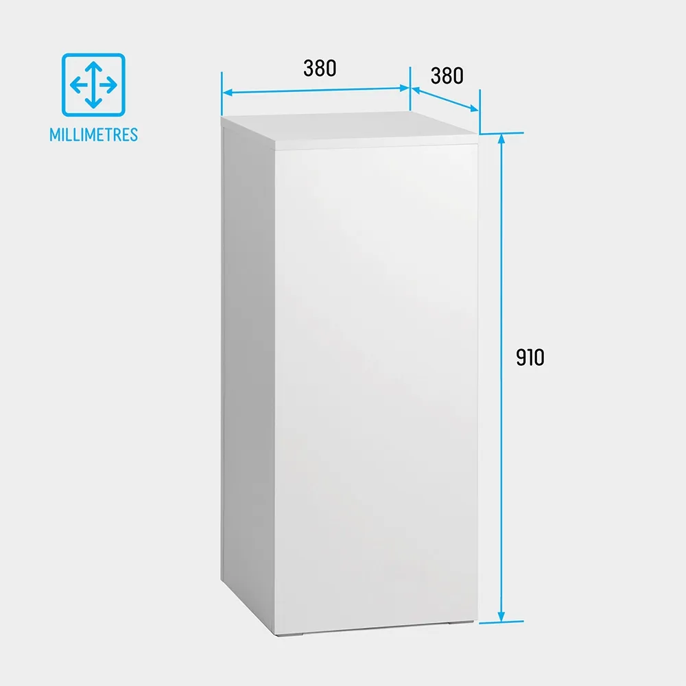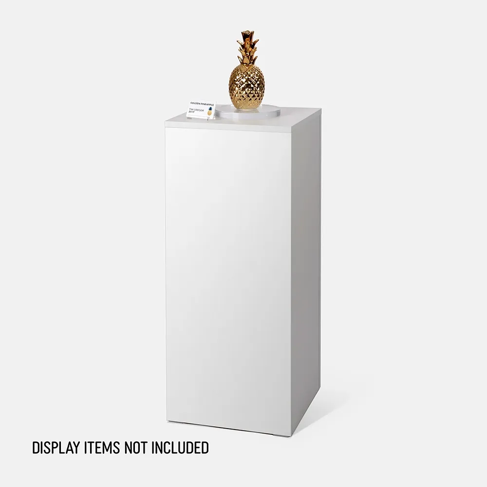 - 91cm tall pedestal perfect for elevating products, with a 38 x 38cm usable area