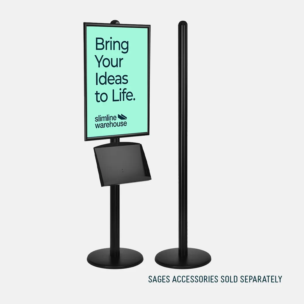 This pole with base is meant for use with our Sages series of retail display systems! There are many accessories and components that attach to the pole to allow you to customise the stand to meet all of your needs. From metal brochure holders to a wide range of snap frames, creating an advertising stand that perfectly complements your business has never been easier.
