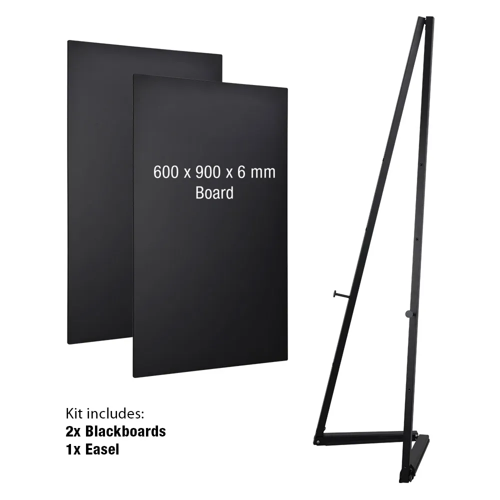 - Easel stand and board includes (2) 6mm thick 600 x 900mm blackboard for writing menus, messaging, & more