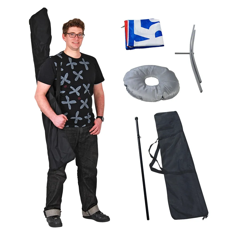 An advertising flag has different options for how your custom designs are printed, with both single & dual-sided options being available. The digital prints show your promotional graphics in full colour, with the single-sided print bleeding through to the other side for a reverse view. The entire kit is portable as well, able to fit within the included carrying bag with ease.