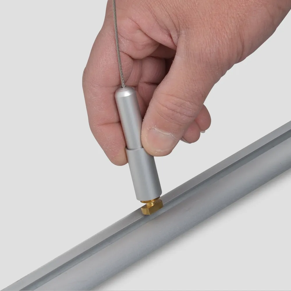 - Cut steel cables to needed size to easily hang poster holders between rails